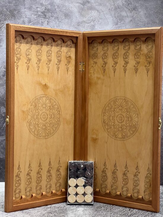Нарды ручная работа 60/60см. Лазерная гравировка ,бук-эко кожа 05