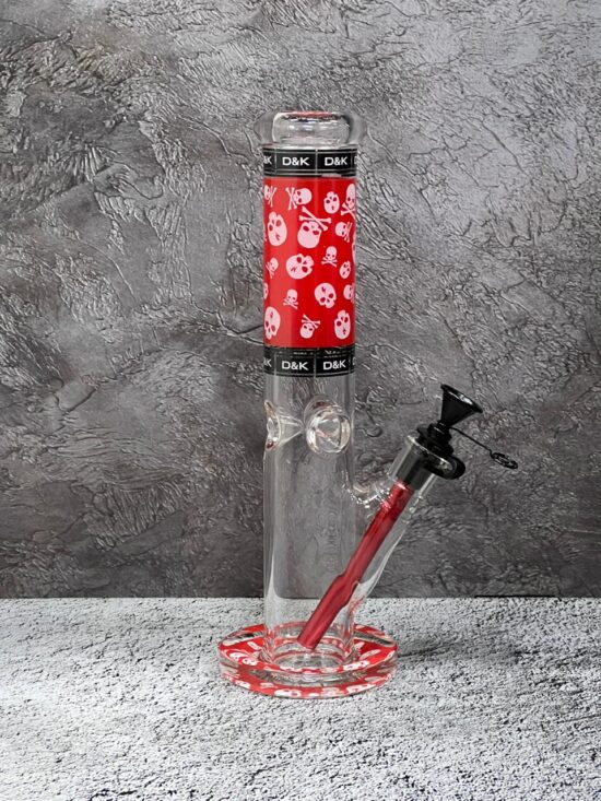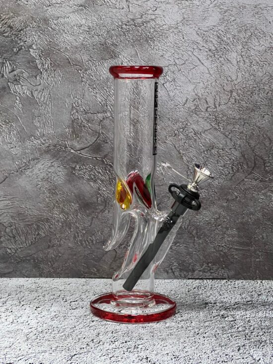 Бонг стеклянный 28см красный-прозрачный
