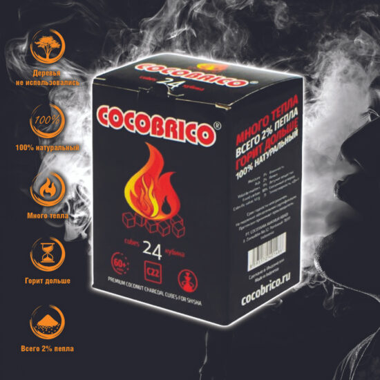Уголь кокосовый для кальяна COCOBRICO 24 шт, 22 мм